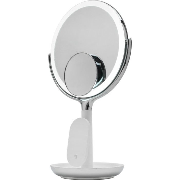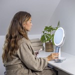 Sharper Image® SpaStudio™ Vanity Mirror är en sminkspegel som har inbyggd trådlös laddning för alla Qi-kompatibla enheter, så att du kan ladda dina enheter medan du gör dig i ordning. Spegeln kan justeras och har 5X förstoring på baksidan. Vänd bara på spegeln om du behöver ta en närmare titt på huden. Inkluderat är även en liten magnetisk spegel med 10X förstoring. Du kan justera spegeln upp eller ned för att hitta den rätta höjden.