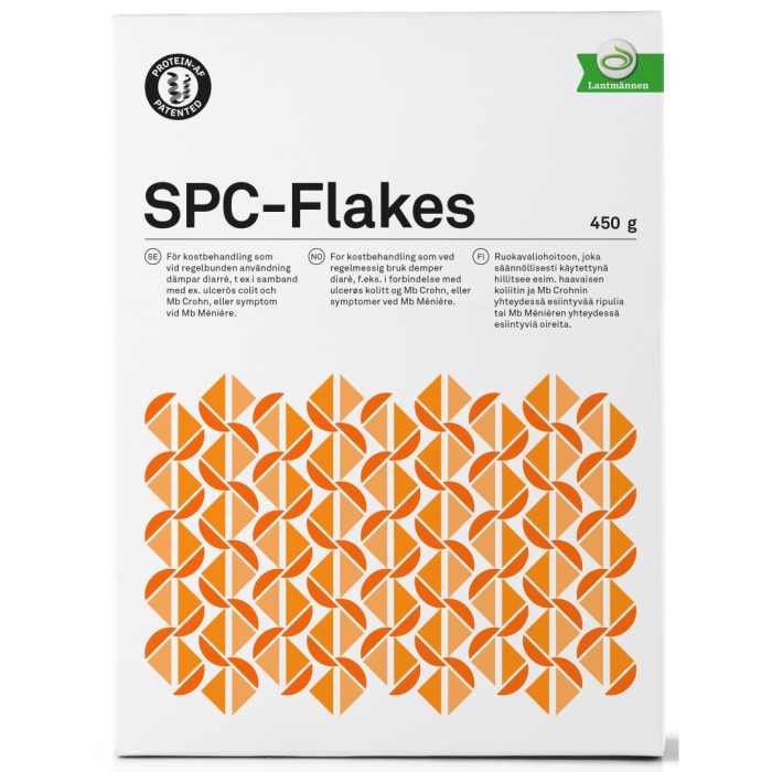 SPC Flakes är ett livsmedel för speciella medicinska ändamål som förbättrar vätskebalansen i kroppens celler. Ökar kroppens produktion av protein antisekretorisk faktor (AF). För kostbehandling av ökade tarmflöden vid t.ex. inflammatoriska tarmsjukdomar som ulcerös colit, Mb Crohn eller vid Mb Ménière (yrsel).