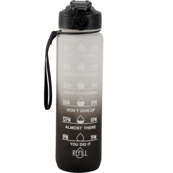 Sthlm Hydra Bottle är en högkvalitativ vattenflaska i plast, designad för dig som kan ha svårt att dricka tillräckligt med vatten under dagen. Flaskan har markeringar med tider under dagen, från 08 på morgonen till 19 på kvällen.