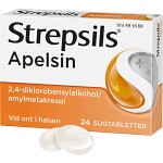 Strepsils Apelsin är en halstablett som används vid lindriga infektioner i munhåla och svalg, till exempel vid ont i halsen.