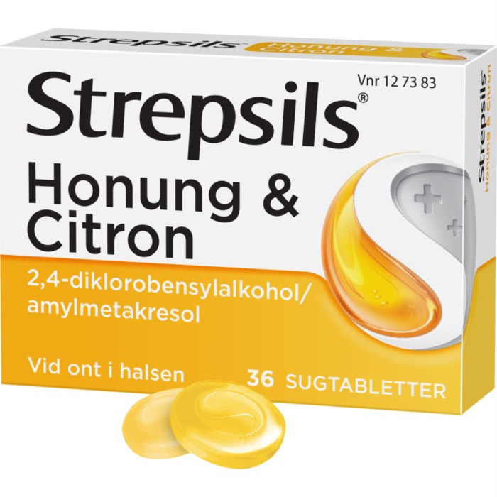 Strepsils Honung & Citron är en halstablett som används vid lindriga infektioner i munhåla och svalg, till exempel vid ont i halsen. Strepsils Honung & Citron har en bakteriehämmande och antiviral effekt.