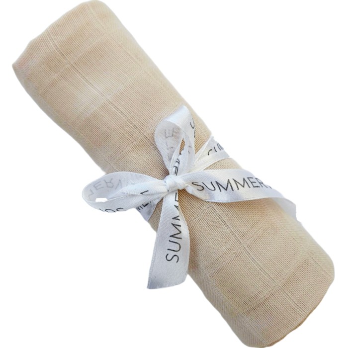 Summerville Muslinfilt Sandshell är en mångsidig muslinfilt i ekologisk bomull. Filten passar bra som en tunn, sval och luftig filt under sommaren men också som en mjuk och gosig snuttefilt året om. Muslinfilten är kvadratisk och i rätt storlek för att användas som vikblöja och senare som blöjinlägg.