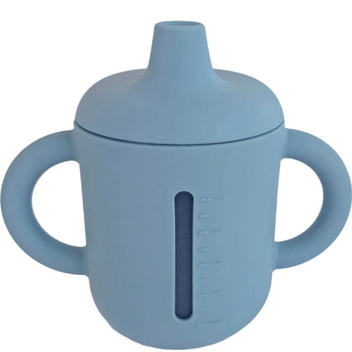 Summervilles pipmugg 250 ml med vätskeindikator, är tillverkad i 100% livsmedelsgodkänd silikon, även den transparenta vätskeindikatorn är i silikon.