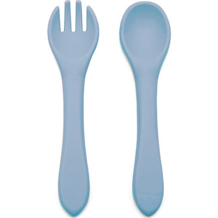 Summerville Sked och gaffel i silikon för babyns matstunder. Besticken är greppvänliga och tillverkade av 100 % livsmedelsgodkänd silikon. Skeden och gaffeln är designade för att passa små händer. De är enkla att greppa och bekväma för barnet att hålla i. Det mjuka silikonet gör dem skonsamma för barnets mun. Silikon är ett material som håller bra och är enkelt att sköta. Är värmebeständig och kan användas i mikrovågsugnen och tål att köras i diskmaskinen. Längd: 14 cm