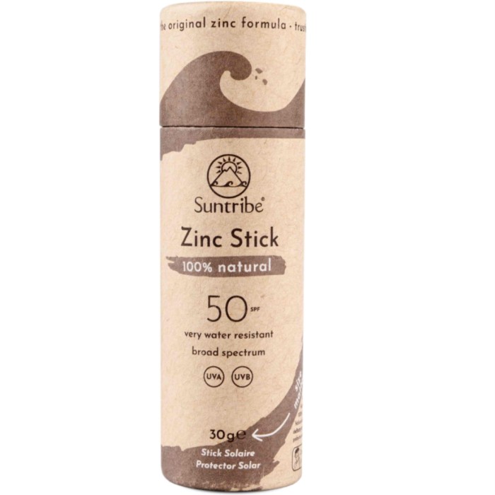 Suntribe Mineral Zinc Sun Stick SPF50 är ett solstift med zink framtaget för att hålla sig på plats både i stora vågor och när du svettas på land. Kan användas i ansiktet, särskilt på näsa, öron och läppar. Sticket lämnar färg på huden, så att du kan se var du använt det, och ser att huden är skyddad.