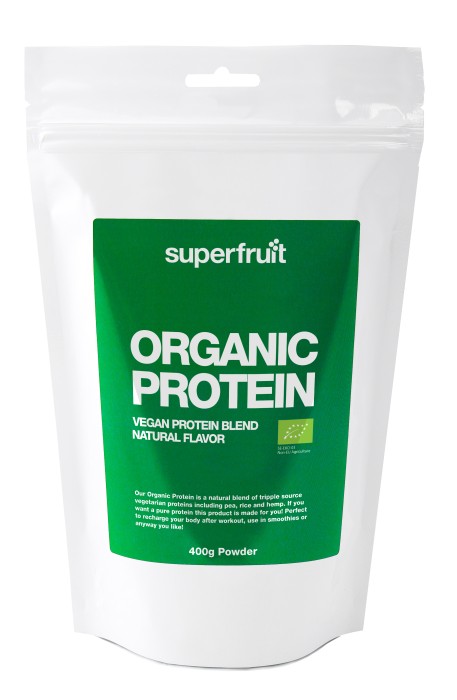 Organic Protein pulvermix: 100% ekologisk: ärtprotein, risprotein, hampaprotein.