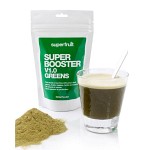 Super Booster V1 Greens är en pulvermix av olika alger, gräs, frukter, grönsaker, örter och enzymer. Enligt rekommendationer ska man få i sig ca 500g frukt och grönt per dag. Super Booster V1 Greens är en komplex mix av mer än 30 olika ingredienser. 1 msk innehåller mer än 7000 orac-enheter (umolTE/g).
