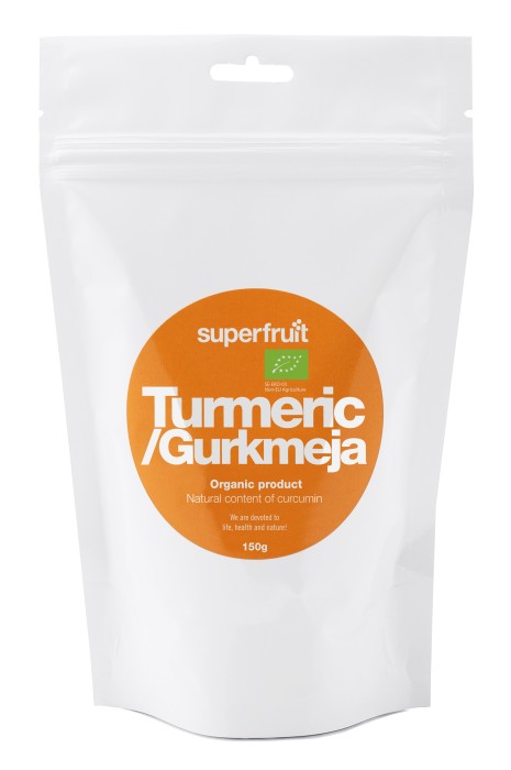 Gurkmeja ingår i familjen ingefärsväxter, och gurkmejans jordstam kan kokas, torkas och malas till ett fint pulver. Sin gula färg får gurkmejan från kurkuminoider och det aktiva ämnet i gurkmeja kallas kurkumin. Superfruits gurkmejapulver (Curcuma longa) innehåller minst 3% curcumin, den aktiva substansen i gurkmeja. Gurkmejan är av arten Longa som har det högsta naturliga innehållet av curcumin, runt 3-4%.