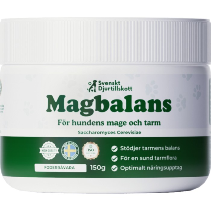 Magbalans från Svenskt Djurtillskott är ett tillskott för hundens mage och tarm. En obalanserad tarm kan uppstå i olika situationer som stress, vid en obalanserad kost, mycket intryck, eller efter att hunden ätit något dåligt. Magbalans är ett helt naturligt pulver som kan hjälpa hundens mage att må bättre och bidra till en balanserad tarm