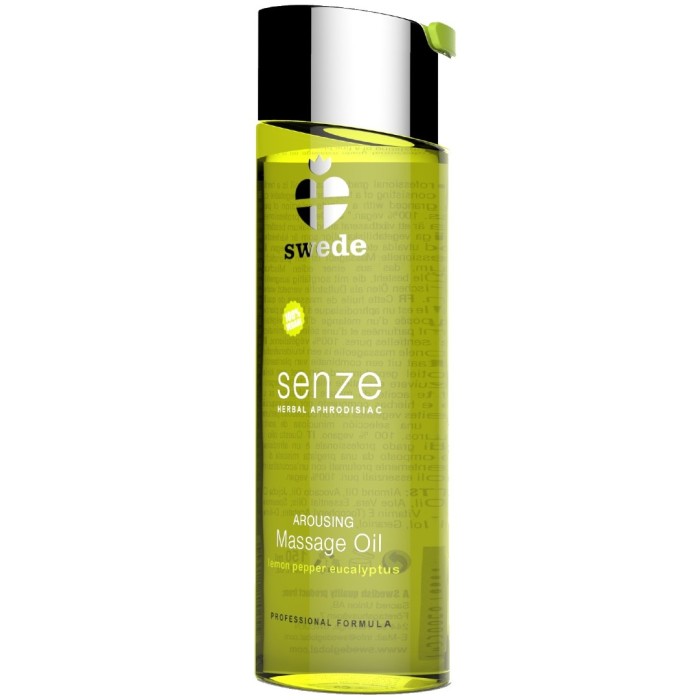 Swede Arousing Massage Oil Lemon Pepper Eucalyptus är en massageolja som innehåller en blandning av vegetabiliska och eteriska oljor. Arousing-oljan har en frisk doft med inslag av eukalyptus och peppar. Använd oljan på huden och massera med långsamma rörelser. Massageoljan med eteriska oljor passar bäst till aromamassage, en lugn och mjuk massage. Endast för användning på huden. Vegansk.