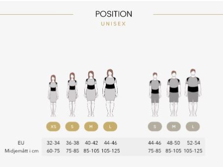 Position Hållningsväst från Swedish Posture är en hållningsväst för en bättre hållning i rygg och mindre spänningar. Storlek XS motsvarar storlek 32-34, och passar midjemått 60-75 cm.