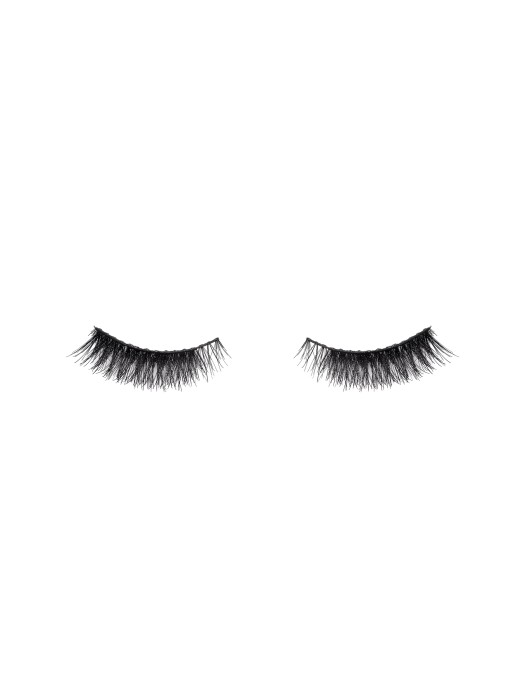 1. Mät och klipp fransremsan från yttre ögonvrån vid behov. 2. Applicera lim längs bandet och vänta 30 sekunder. 3. Fäst fransarna genom att pressa dem mot din egna franslinje och avsluta med ett lager mascara så att lösfransarna blandas med dina egna fransar. Lim köps separat.