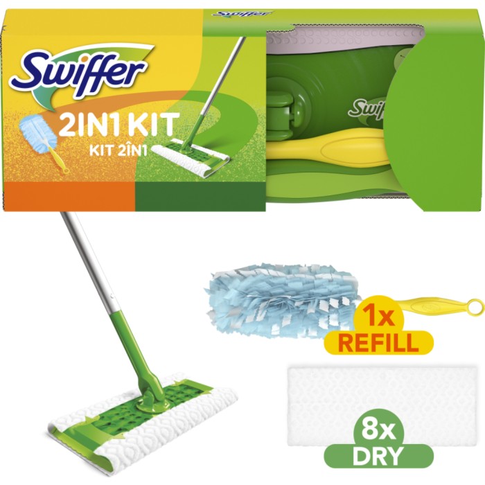 Swiffer 2in1 Kit (1 mopp + 8 torra rengöringsdukar + 1 dammvippa)