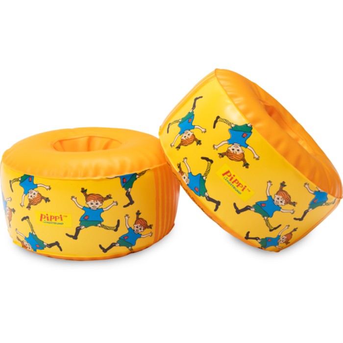 Armpuffar med skumfyllning från Swimpy. Ett flythjälpmedel som gör att barnet hamnar i rätt simläge i vattnet. Utrustade med säkerhetsventiler för att förhindra luftläckage.