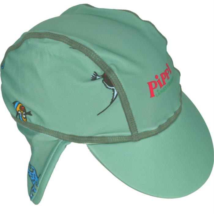 Swimpys gröna UV-hatt med motivet Pippi i Söderhavet används för skydd mot UV-strålning. Ger ett skydd motsvarande UPF50+.