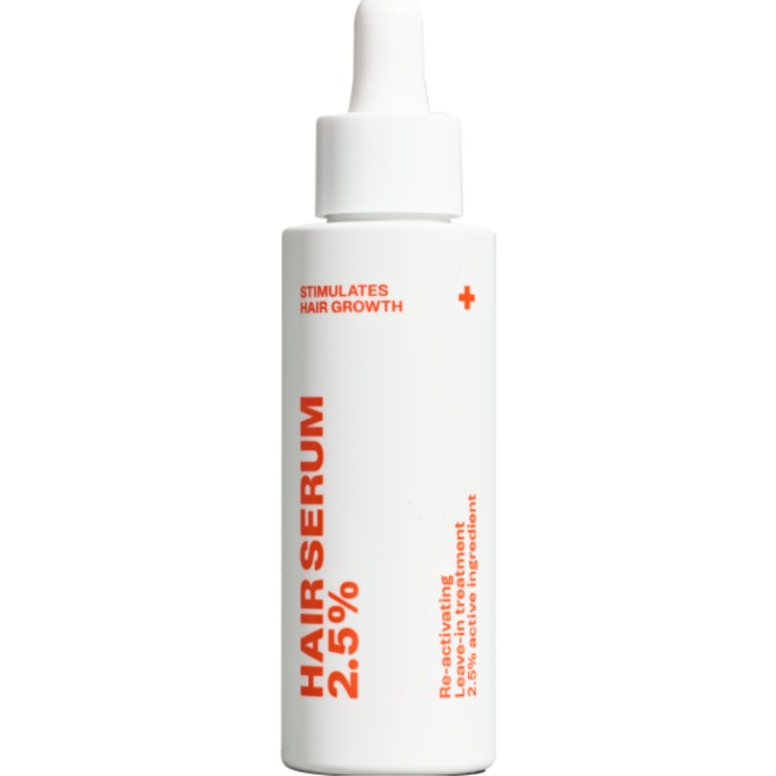 Hair Serum 2.5% Re-Activating Leave-In Treatment från Swiss Clinic är ett hårserum som hjälper till att stimulera hårsäckarna. Serumet påverkar cellerna i både tillväxtfasen och vilofasen för att hjälpa vilande hårsäckar att övergå till tillväxtfas igen. Den aktiva ingrediensen i Hair Serum 2.5% heter Akosky Azuki.