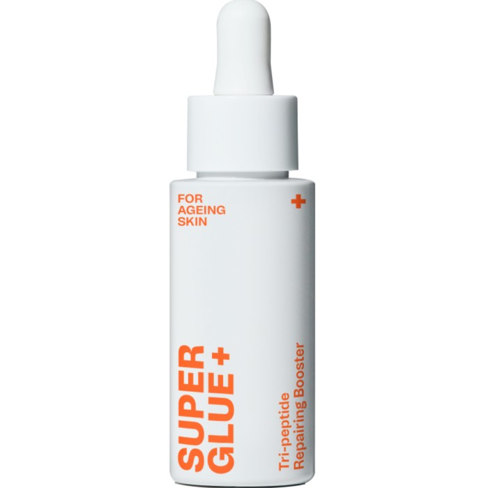 Super Glue+ Tri-Peptide Repairing Booster från Swiss Clinic är en anti-ageing-booster som du kan applicera direkt på huden, eller blanda i din The Base+ kräm.