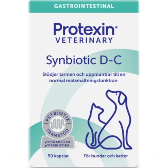 Synbiotic D-C är ett högkoncentrerat probiotikum, kombinerat med prebiotikum Preplex (näring till E. faecium) för hundar och katter. Förebygger tarmstörningar och hjälper tarmen att återställa balansen vid eventuella störningar.