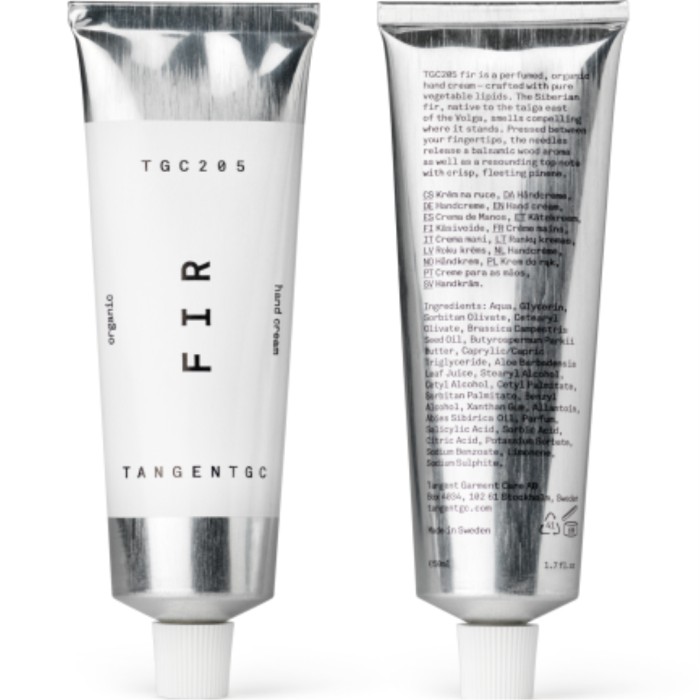 Tangent GC Fir Hand Cream är en väldoftande handkräm som snabbt går in i huden. Handkrämen innehåller vegetabiliskt squalene som vårdar torr hud och triglycerider från kokosolja som ger huden lyster. Krämen innehåller även E-vitamin och glycerin, samt sojabönolja som återfuktar och reducerar ålderstecken kopplade till hyperpigmentering.