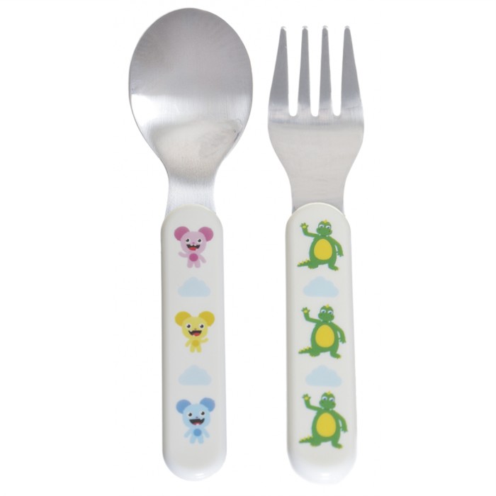 Setet består av en greppvänlig gaffel och sked i rostfritt stål.