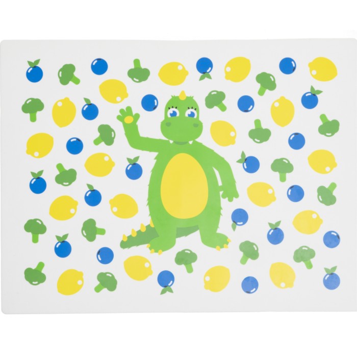 Denna färgglada Bolibompa bordstablett är tillverkat av livsmedelsgodkänt silikon och är både dekorativ och funktionell på matbordet. Den matta ytan på baksidan gör att underlägget ligger stadigt på bordet utan att halka runt. Materialet är smidigt att rulla ihop för enkel förvaring och tar en liten plats i väskan när du ska åka iväg. Är lätt att torka av. Storlek: 40 x 30 cm.
