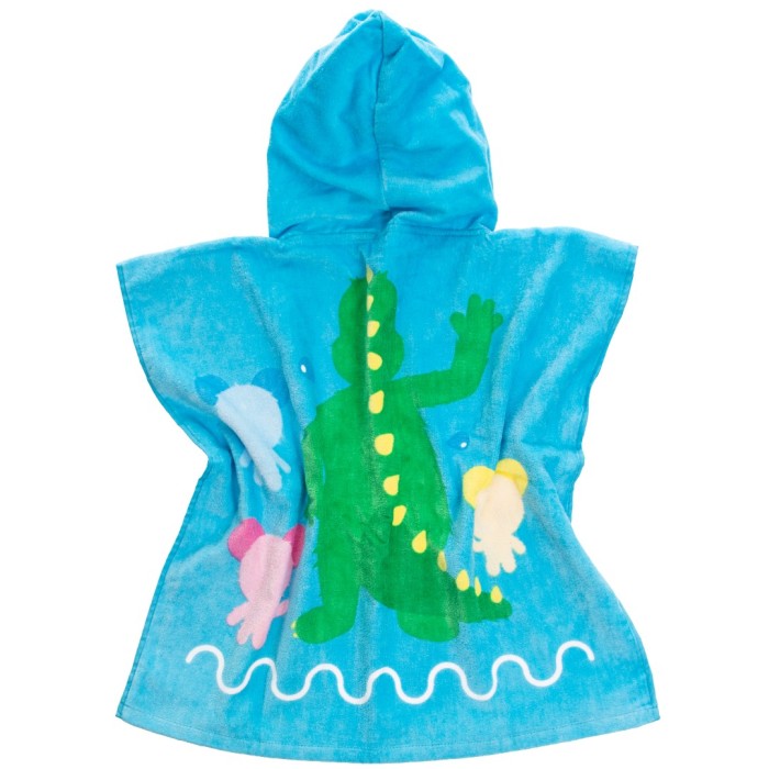 Den söta badponchon är tillverkad i bomull och har ett fint badmotiv och är perfekt att ta med till stranden eller till badhuset - eller använda hemma efter badet.