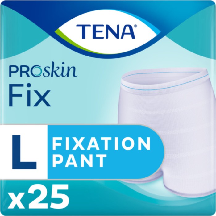 En tvättbar fixeringsbyxa som förebygger läckage genom att hålla den absorberande TENA produkten säkert på plats. 25 st i ett paket.