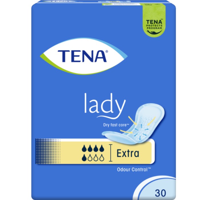 TENA Lady Extra är ett anatomiskt utformat skydd för kvinnor med medelstora urinläckage.