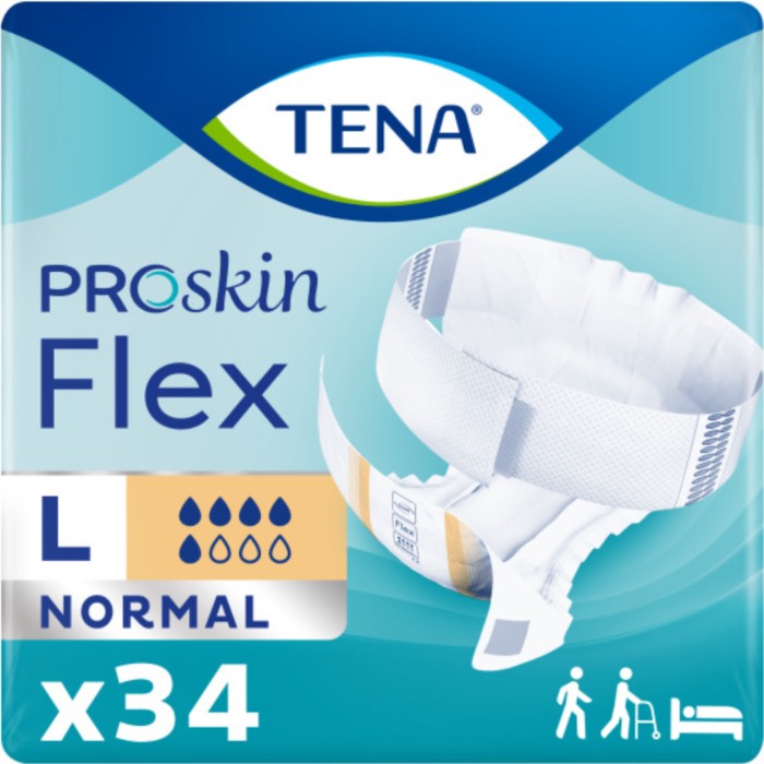 Tena Flex Normal är utformad för snabbare, enklare och mer ergonomiska byten för att underlätta för vårdpersonal. Skyddet har dubbla absorberande kärnor med superabsorbenter. Feel Dry-funktionen ger en hög absorptionshastighet, kapslar effektivt in urinen och har en neutraliserande effekt på oönskad lukt.