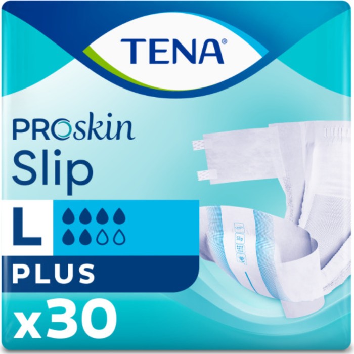 Tena ProSkin Slip Plus är ett allt-i-ett-skydd för mycket stora urinmängder. Tena Slip Plus kan användas för maximal läckagesäkerhet vid t ex oroliga/plockiga eller sängliggande vårdtagare. Ingen separat fixeringsbyxa behövs. Justerbar tejp för rätt fixering.