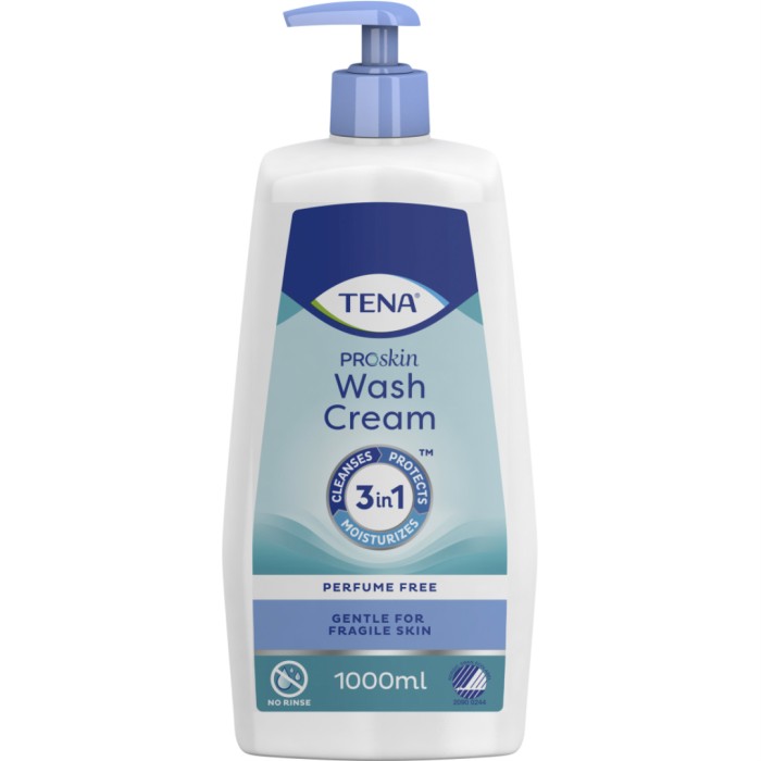 TENAs oparfymerade ProSkin Wash Cream är en rengöringskräm som inte behöver sköljas av. Tvättkrämen kan användas för intimrengöring och för helkroppsrengöring. Tvättkrämen har en 3-i-1 formulering som främjar hudhälsan genom att varsamt rengöra, återställa och skydda huden. Ett milt, parfymfritt alternativ vid frekvent rengöring.