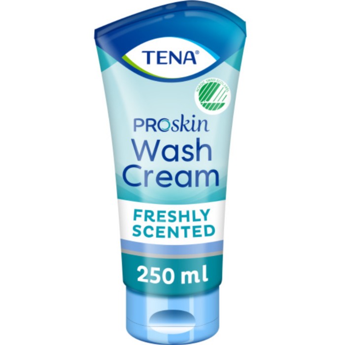 Tena Wash Cream 3-in-1 gör lika rent som tvål och vatten men är skonsammare mot huden. Tena Wash Cream 3-in-1 rengör, återställer och skyddar även den mest känsliga hud. Tvättkrämen innehåller bland annat ämnen som bevarar hudens skyddande fettlager och den behöver inte sköljas av med vatten. Naturligt pH-värde 5,5.