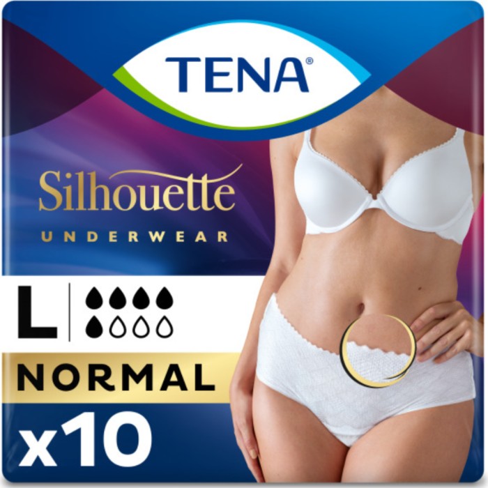 TENA Silhouette Normal är en absorberande engångstrosa i ett elastiskt bomullsliknande material. Skyddet är utformat för att se ut och kännas som vanliga trosor och har en feminin design. Engångstrosans Fresh Odour Control hämmar bakterietillväxt och reducerar uppkomst av lukt.