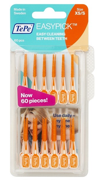 TePe EasyPick är en tandpetare med ett stadigt skaft och silikonlameller för att effektivt göra rent mellan tänderna. Tandpetaren är så flexibel att du enkelt kommer åt både mellan de främre och de bakre tänderna.