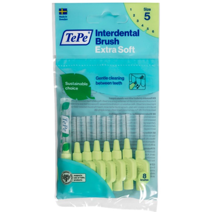 TePe Extra Soft är en mjuk mellanrumsborste för känsliga tänder och ömtåligt tandkött. Mellanrumsborsten gör rent mellan tänderna där tandborsten inte kommer åt. Att regelbundet göra rent med en mellanrumsborste kan förebygga tandköttsinflammation, karies och dålig andedräkt. TePe Mellanrumsborste har extra mjuka strån av högsta kvalitet för en effektiv och skonsam rengöring. Framtagen i samråd med tandvårdsexpertis för att säkerställa bästa funktion. I påsen finns 8 borstar och en skyddshylsa, som även kan användas som skaftförlängare.