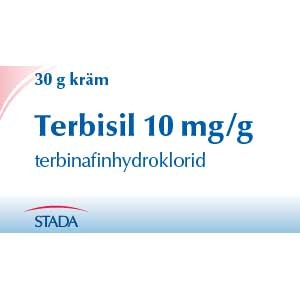 Dosering och behandlingstider: Fotsvamp (Tinea pedis) mellan tårna: En gång dagligen i en vecka. Symtom som förknippas med fotsvamp är klåda, rodnad och fjällning mellan tårna. Sprickor uppstår ibland (särskilt mellan tårna). Man kan också få vätskande blåsor. Fotsvamp luktar vanligtvis illa. Svampinfektion och candida i ljumsken: En gång dagligen i 1-2 veckor. En förbättring av symtomen ses vanligtvis efter några dagar men det är viktigt att fullfölja behandlingen för att inte få återfall. Kontakta läkare om förbättring inte inträtt efter 1 vecka (vid fotsvamp) eller 2 veckor (vid svampinfektion i ljumsken). Detta läkemedel är endast för utvärtes bruk. Tubens öppning är förseglad med aluminium. Pressa skruvkorkens motsatta sida lätt mot förseglingen för att öppna tuben. Innan krämen används måste huden vara ren och torr. Applicera precis tillräckligt kräm för att bilda ett tunt lager på och omkring den angripna huden. Smörj försiktigt in krämen. Om angreppet finns i hudveck (mellan tår eller i ljumsken), kan huden täckas med en steril kompress framför allt på natten. Tvätta händerna efter behandling. Du bör inte använda Terbisil kräm om du är gravid eller planerar att bli gravid. Informera läkaren om du blir gravid medan du använder Terbisil. Terbinafin passerar över till modersmjölken. Använd inte Terbisil kräm om du ammar. Spädbarn ska inte komma i kontakt med behandlade hudpartier, inklusive brösten.