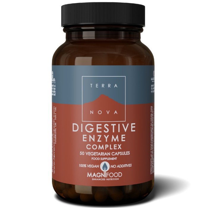 Terranova Digestive Enzyme Complex är ett komplex med matsmältningsenzymer. Terranovas enzymer utvinns ur naturliga källor. Kosttillskottet innehåller förutom enzymer även ingefärsrot, gentiana och kanel.