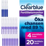 Dessa tester kan endast användas med Clearblue Advanced fertilitetsmonitor. Testresultatet kan endast läsas av på monitorn och inte från linjerna som eventuellt syns på teststickan. Läs anvisningarna och informationen som medföljer monitorn innan du gör ett test. Clearblue Advanced fertilitetsmonitor ska inte användas som en preventivmetod. Förvaras torrt. Förvara oåtkomligt för barn. För hemmabruk. Inte för invärtes bruk. Fertilitetstester: till Clearblue Advanced fertilitetsmonitor och Clearblue fertilitetsmonitor. Graviditetstester: endast till Clearblue Advanced fertilitetsmonitor. Monitorer säljs separat. De flesta kvinnor behöver 10 fertilitetstester under varje cykel. Om du har en lång eller oregelbunden cykel kan du behöva 20 tester. (OBS att teststickorna kan användas till den "gamla" Clearblue fertilitetsmonitor, däremot kan graviditetstesterna endast användas med Clearblue Advanced Fertilitetsmonitor.)