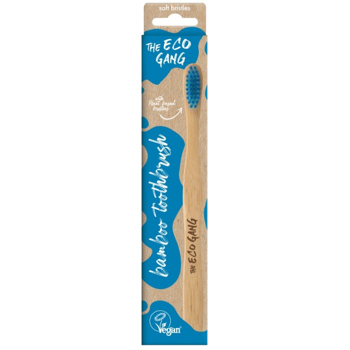 The Eco Gang Bamboo Toothbrush är en tandborste med handtag tillverkat av FSC-märkt bambu. Tandborsten har mjuka borststrån för att kunna användas även av dig som har känsligare tandkött. The Eco Gangs tandborste har ett handtag hämtat från naturen.