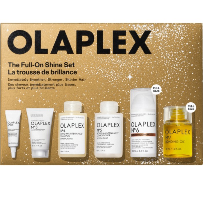 The Full-On Shine Set från Olaplex är ett kit med hårvårdsprodukter för ett starkare, friskare och mer glänsande hår. The Full-On Shine Set innehåller Olaplex-produkter för en komplett hårvårdsrutin. Med sex av Olaplex mest populära produkter får du både intensiv hår- och hårbottenvård, samt styling som ger långvarig glans och skydd. Vissa av produkterna är i mindre förpackningar, andra full size.