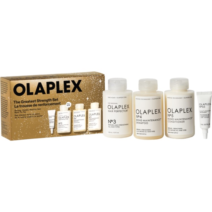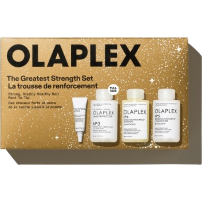 Olaplex The Greatest Strength Set är ett kit med hårprodukter för ett starkare, friskare och mer motståndskraftigt hår. The Greatest Strength Set innehåller fyra av Olaplex mest populära produkter för en komplett rutin som stärker hårets inre struktur, vårdar hårbotten och skyddar mot yttre påfrestningar.