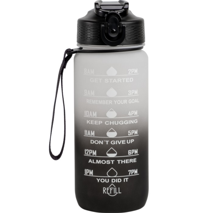 The Hollywood Motivational Bottle är en vattenflaska i plast designad för dig som kan ha svårt att dricka tillräckligt med vatten under dagen. Motivational Water Bottle är en läckagesäker flaska av tritanplast.