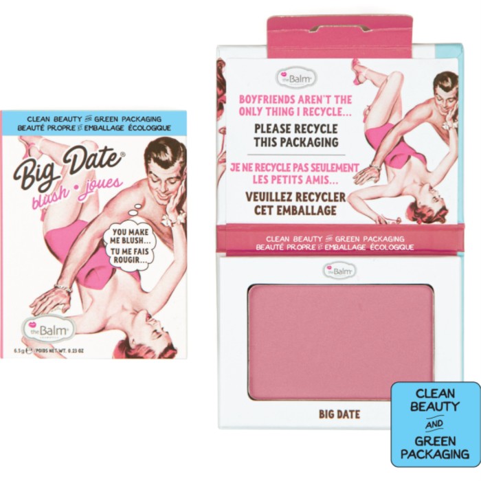 Big Date Blush är ett rouge som ingår i theBalm:s Date-serie. I serien hittar du tre rouge i fina nyanser som heter "It's a Date", "Big Date" och "Third Date". Rougen innehåller vårdande ingredienser som ekologisk jojobaolja och ekologisk druvkärneolja. Förpackningen är återvinningsbar.