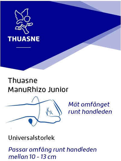 ManuRhizo Junior är en bekväm ortos med en skumfodrad insida och genomtänkt design för att kunna användasd vid långvarigt bruk. Fyra kardborreband håller ortosen på plats samtidigt som den är enkel att ta på och av. Kan tvättas i 30 grader skonsam tvätt.