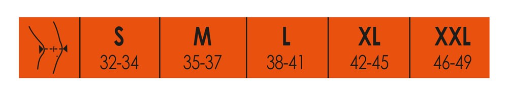 För att välja rätt storlek, mät omkretsen runt knät. Se bild för storlekstabell.