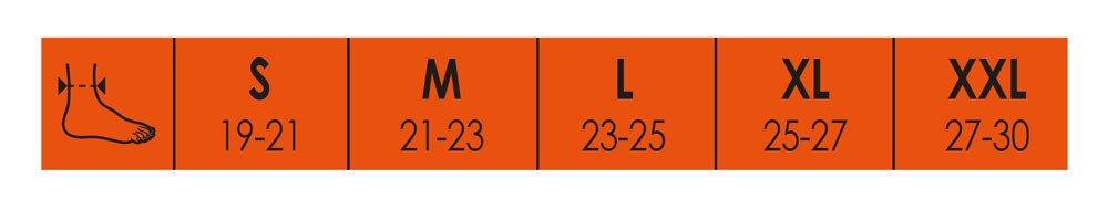 För att välja rätt storlek, mät omkretsen runt vristen. Se bild för storlekstabell.