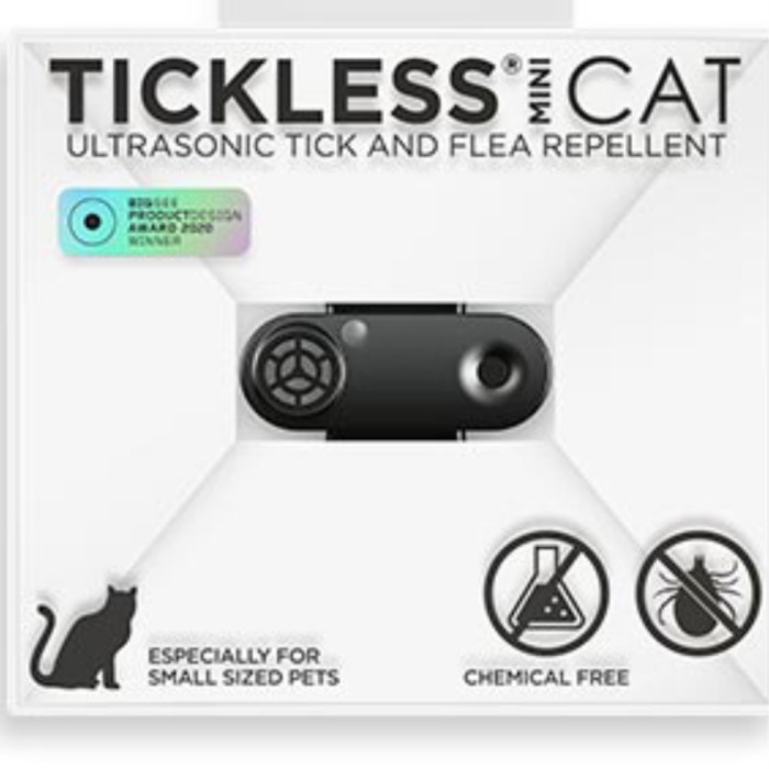 TICKLESS® Mini Cat är en fästingavvisande produkt som ger ett skydd för mindre husdjur, som katter, utan änvändning av kemikalier. Produkten är liten och smidig och fästs enkelt på husdjurets halsband eller koppel. När den är aktiverad avger TICKLESS ultraljud med så hög frekvens att det inte uppfattas av, eller är skadligt för, människor eller husdjur. Ultraljudet stör däremot fästingar och gör att de inte kan orientera sig vilket ger ett effektiv skydd och kan förebygga fästingbett med upp till 94% effektivitet. Kan användas även på valpar och dräktiga djur. Uppladdningsbar och kemikaliefri. Utformad för smådjur. 2,5 meters räckvidd.