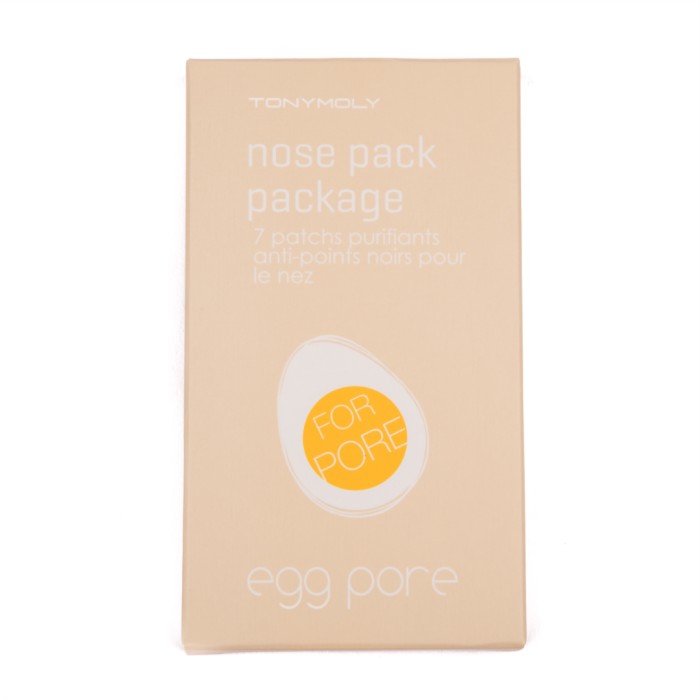TONYMOLY Egg Pore Nose Pack Package innehåller strips för borttagning av pormaskar på näsan. Stripsen rengör porerna och drar till sig orenheter. De innehåller äggskalsextrakt och kol för att vara effektiva mot pormaskar. Äggskalsextraktet lugnar huden och ger lyster och kol drar till sig orenheter.