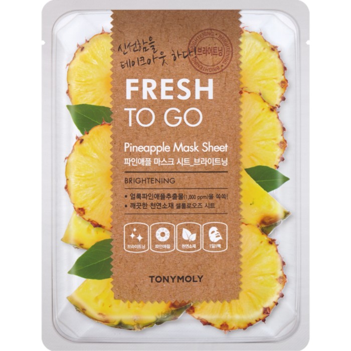 Fresh To Go Pineapple Mask Sheet från TONYMOLY är en arkmask med ananas-extrakt som ger lyster till huden. Masken innehåller en emulsionsliknande essence som gör att arkmasken lägger sig bra mot huden.