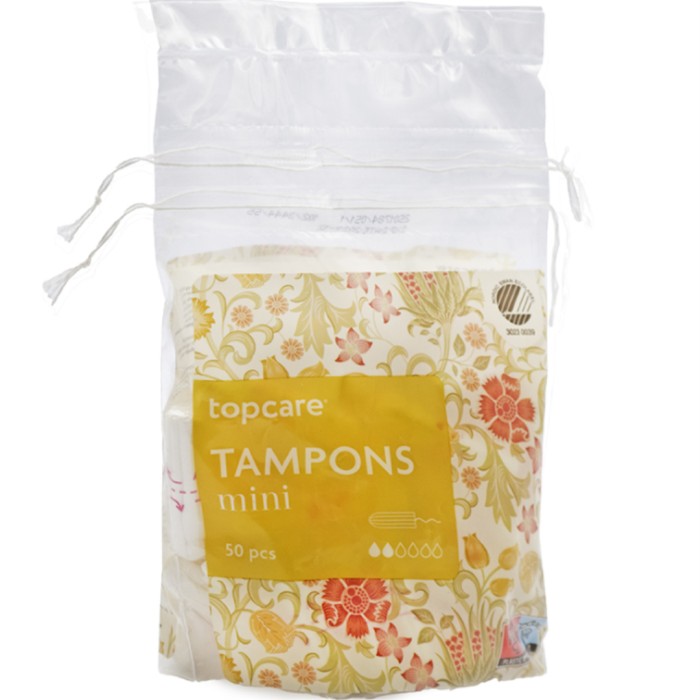 Topcare tamponger är bekväma att använda och ger ett skydd vid menstration. Med högabsorberande kärna sugs vätskan upp snabbt och minskar risken för läckage. Det mjuka, lena ytskiktet bidrar till att tampongen är enkel att ta ut och sätta in.